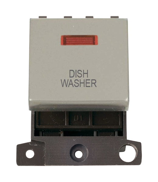 Click MiniGrid MD023PN-DW 20A DP Ingot Switch + Neon "Dishwasher" - Pearl Nickel