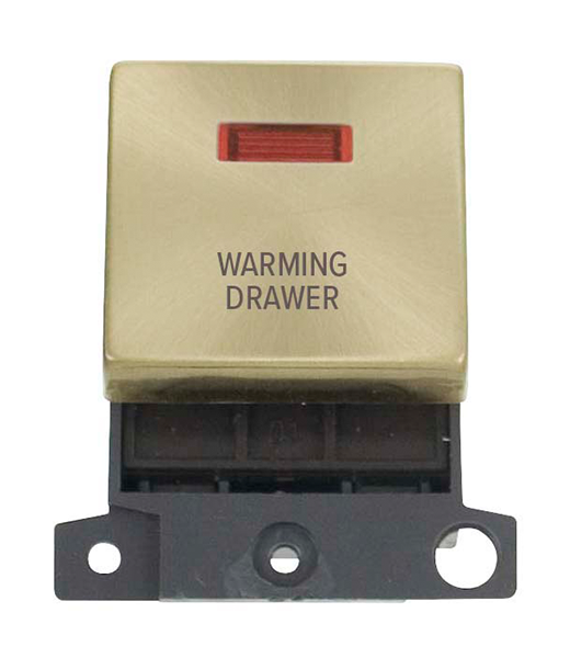 Click MiniGrid MD023SB-WDR 20A DP Ingot Switch + Neon "Warming Drawer" - Satin Brass