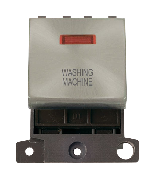 Click MiniGrid MD023SC-WM 20A DP Ingot Switch + Neon "Washing Machine" - Satin Chrome