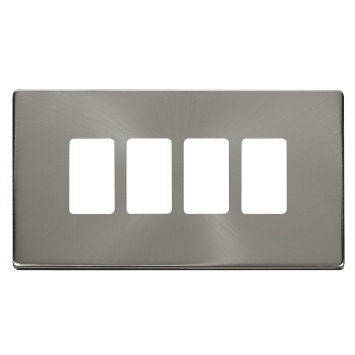 Click Definity SCP20404BS 4 Gang GridPro Frontplate - Brushed Stainless