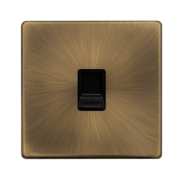 Click Definity Complete SFAB120BK Single Telephone Master Outlet - Antique Brass Cover Plate - Black Insert