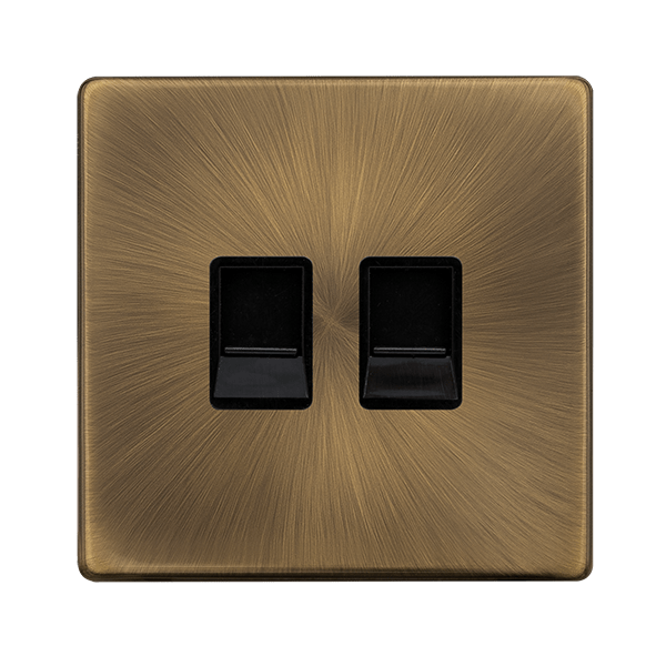Click Definity Complete SFAB126BK Twin Telephone Secondary Outlet - Antique Brass Cover Plate - Black Insert