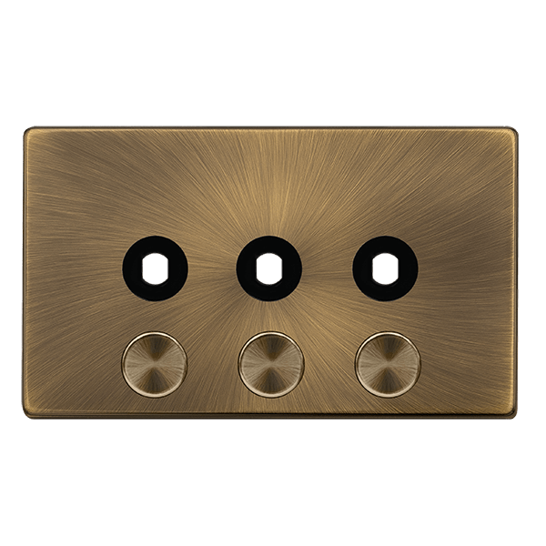 Click Definity Complete SFAB143PL 3 Gang Unfurnished Dimmer Plate & Knobs - Antique Brass