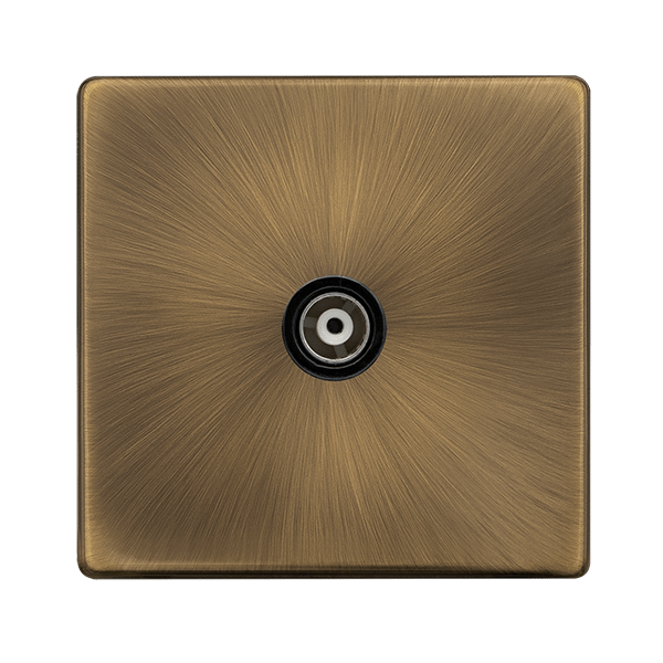 Click Definity Complete SFAB158BK Single Isolated Coaxial Outlet - Antique Brass Cover Plate - Black Insert