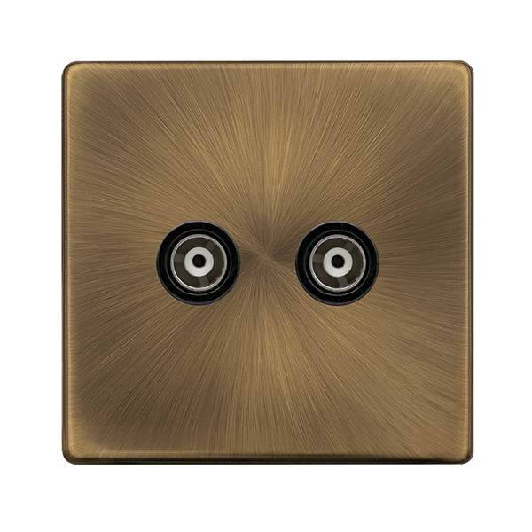 Click Definity Complete SFAB159BK Twin Isolated Coaxial Outlet - Antique Brass Cover Plate - Black Insert