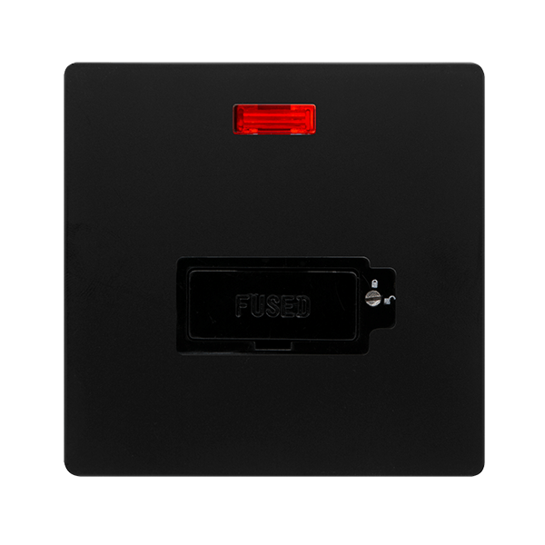 This item is 13A Lockable Fused Connection Unit With Neon - Matt Black Cover Plate - Black Insert