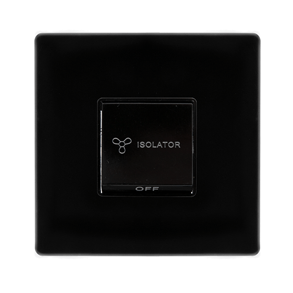 This item is 10A 3 Pole Fan Isolation Switch - Metal Black Cover Plate - Black Insert