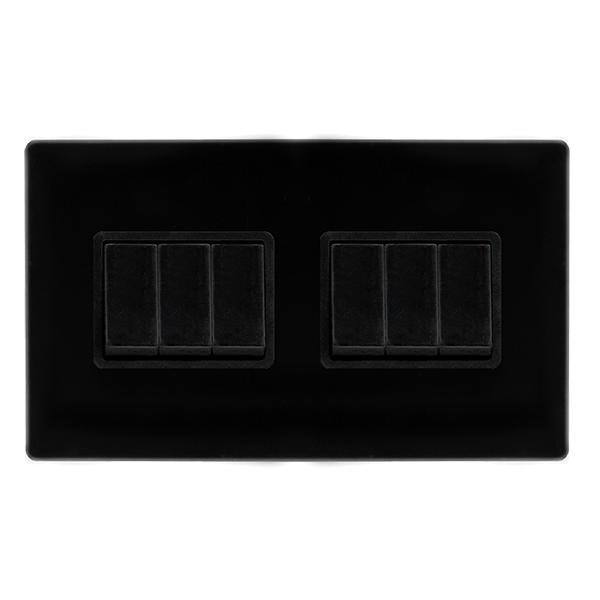 Click Definity Complete SFMB105BK 10AX Ingot 6 Gang 2 Way Switch - Metal Black Cover Plate - Black Insert