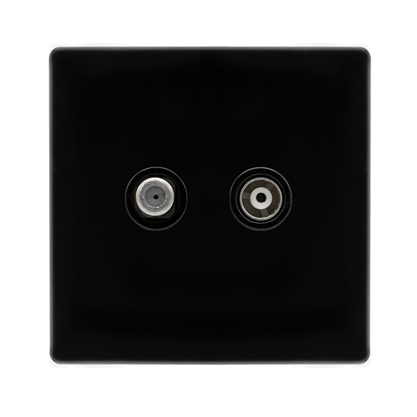 This item is Isolated Satellite & Isolated Coaxial Outlet - Metal Black Cover Plate - Black Insert