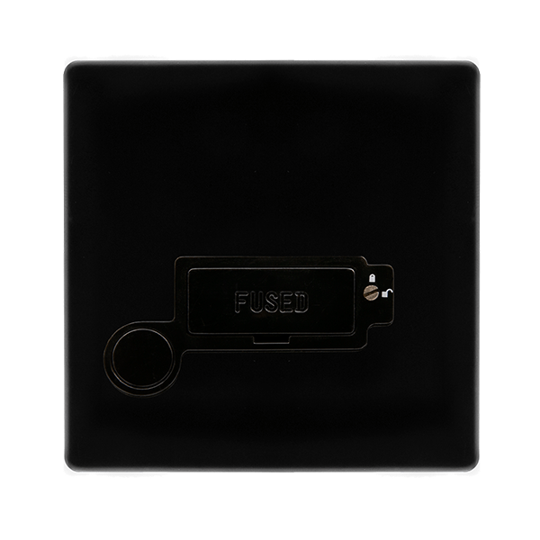 This item is 13A Lockable Connection Unit With Optional Flex Outlet - Metal Black Cover Plate - Black Insert
