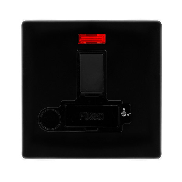 This item is 13A Switched Lockable Connection Unit With Neon & Optional Flex Outlet - Metal Black Cover Plate - Black Insert