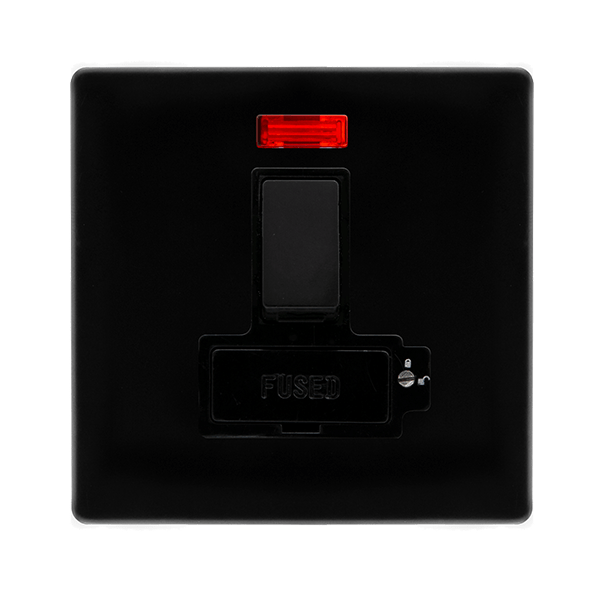 This item is 13A Lockable Switched Fused Connection Unit With Neon - Metal Black Cover Plate - Black Insert