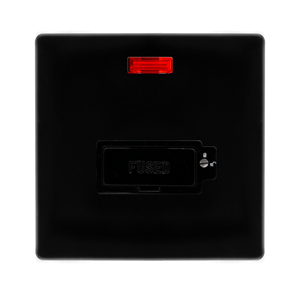 This item is 13A Lockable Fused Connection Unit With Neon - Metal Black Cover Plate - Black Insert
