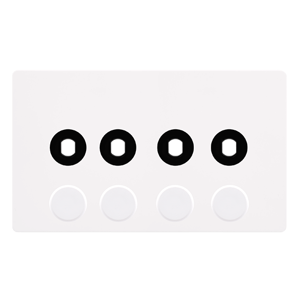 Click Definity Complete SFMW144PL 4 Gang Unfurnished Dimmer Plate & Knobs - Metal White