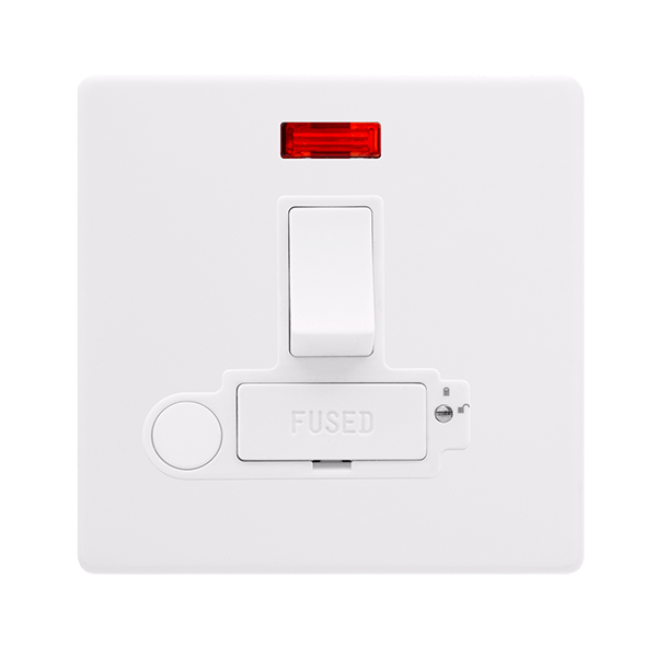 This item is 13A Switched Lockable Connection Unit With Neon & Optional Flex Outlet - Polar White Cover Plate - Polar White Insert