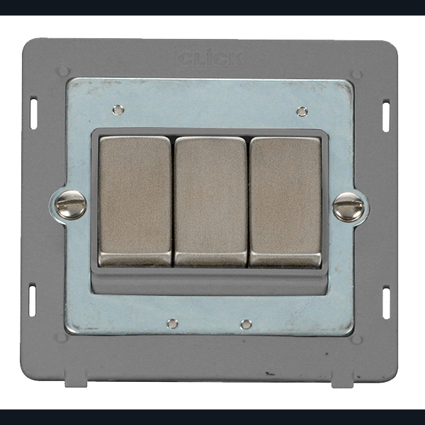 Click Definity SIN413GYSS 10AX Ingot 3 Gang 2 Way Plate Switch Insert - Grey / Stainless Steel