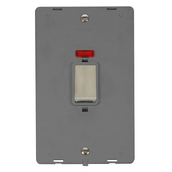 Click Definity SIN503GYSS 50A Ingot 2 Gang (Vertical) Double Pole Plate Switch With Neon Insert - Grey / Stainless Steel
