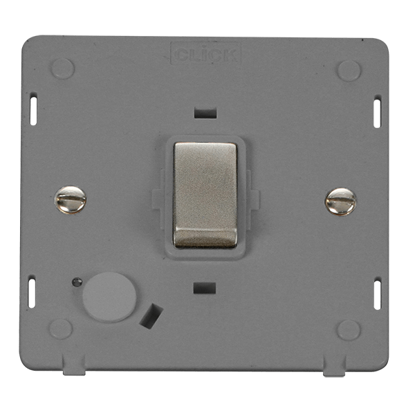 Click Definity SIN522GYSS 20A Ingot Double Pole Plate Switch With Optional Flex Outlet Insert - Grey / Stainless Steel