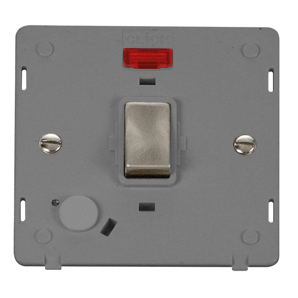 Click Definity SIN523GYBS 20A Ingot Double Pole Plate Switch With Optional Flex Outlet With Neon Insert - Grey / Brushed Stainless