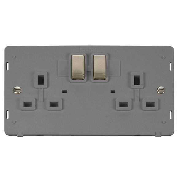 Click Definity SIN536GYBS 13A Ingot 2 Gang Double Pole Switched Socket Outlet Insert - Grey / Brushed Stainless