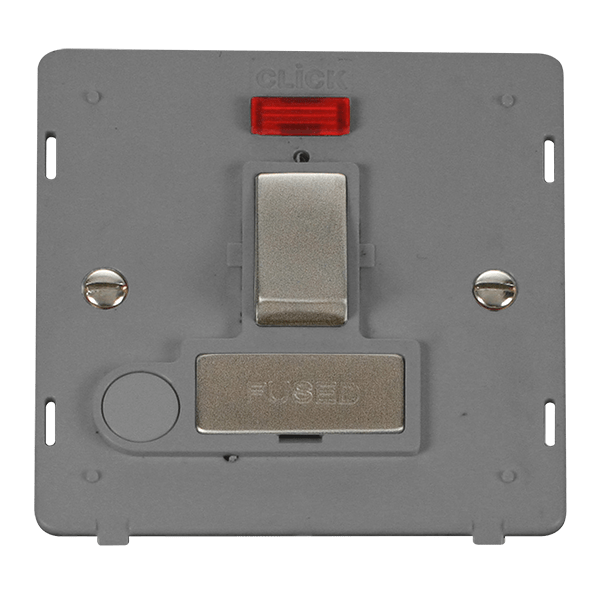 Click Definity SIN552GYSS 13A Ingot Double Pole Switched Fused Connection Unit With Neon & Optional Flex Outlet Insert - Grey / Stainless Steel
