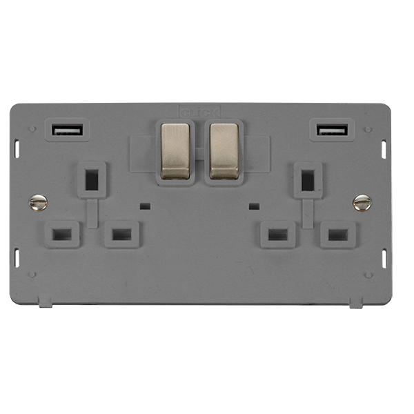 Click Definity SIN580GYBS 13A Ingot 2 Gang Switched Socket Outlet With Twin USB (Total 4.2A) Outlets Insert - Grey / Brushed Stainless