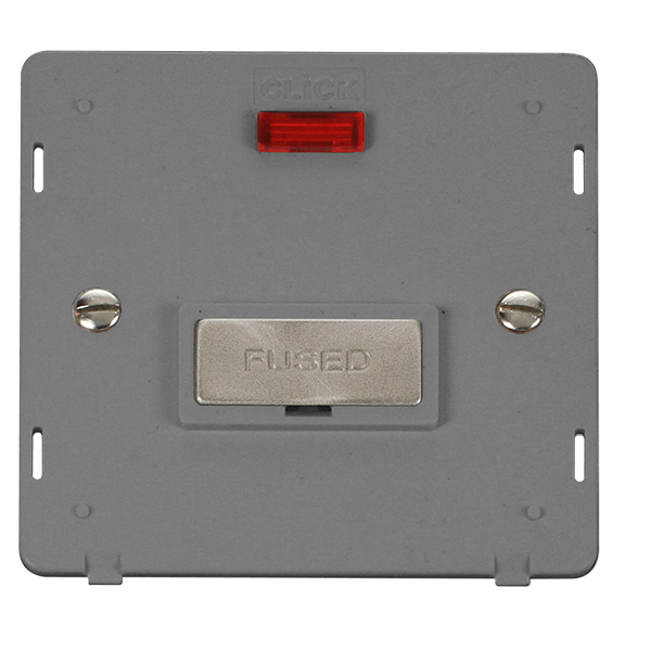 Click Definity SIN753GYBS 13A Ingot Fused Connection Unit With Neon Insert - Grey / Brushed Stainless