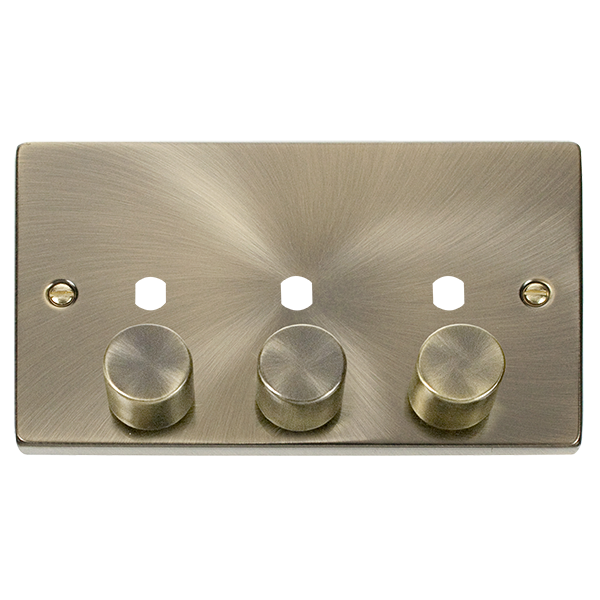 Click Deco VPAB153PL Victorian 3G Unfurnished Dimmer Plate & Knobs (1200W Max) - Antique Brass