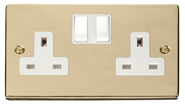 Click Deco VPBR036WH Victorian 13A 2G DP Switched Socket - Polished Brass (White)