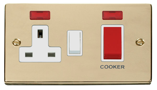 This item is 45A 2G DP Switch + 13A DP Switched Socket + Neon - Victorian Polished Brass (White)