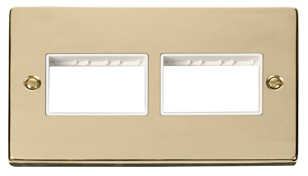 Click Deco VPBR406WH Victorian 6G MiniGrid Unfurnished Front Plate - Polished Brass (White)