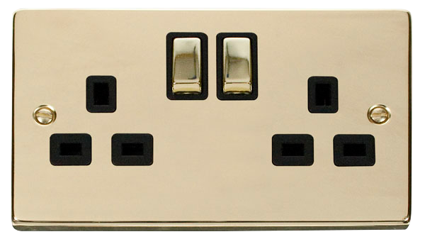 Click Deco VPBR536BK Victorian 13A Ingot 2G DP Switched Socket - Polished Brass (Black)