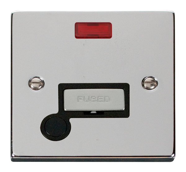 Click Deco VPCH553BK Victorian 13A Ingot Fused Spur + Neon + Flex Outlet - Polished Chrome (Black)