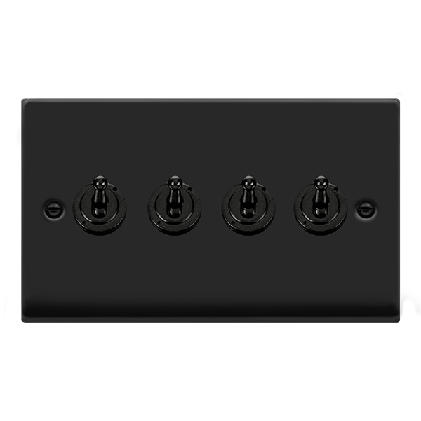Click Deco VPMB424 Victorian 10AX 4-Gang 2-Way Toggle Plate Switch - Matt Black