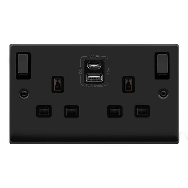 This item is 13A Ingot 2G Switched Socket + Type A&C USB - Victorian Matt Black (Black)