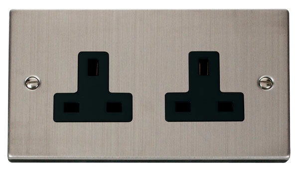Click Deco VPSS032BK Victorian 2G 13A Unswitched Socket - Stainless Steel (Black)