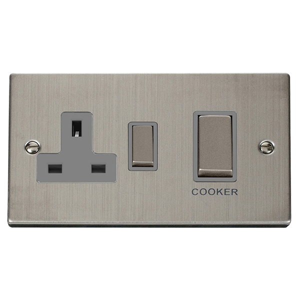 Click Deco VPSS504GY Victorian 45A Ingot 2G DP Switch + 13A DP Switched Socket - Stainless Steel (Grey)