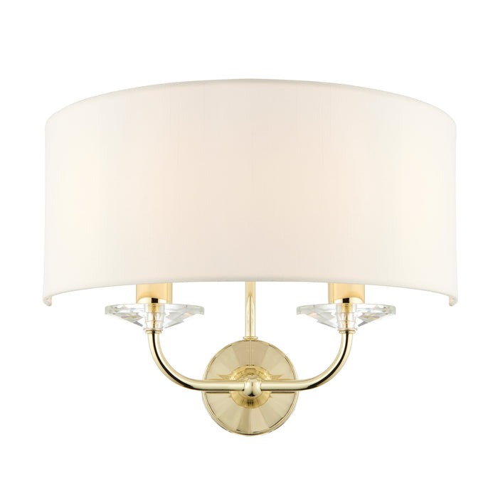 Endon 70562 Nixon 2lt Wall Brass plate & vintage white fabric 2 x 40W E14 candle (Required)