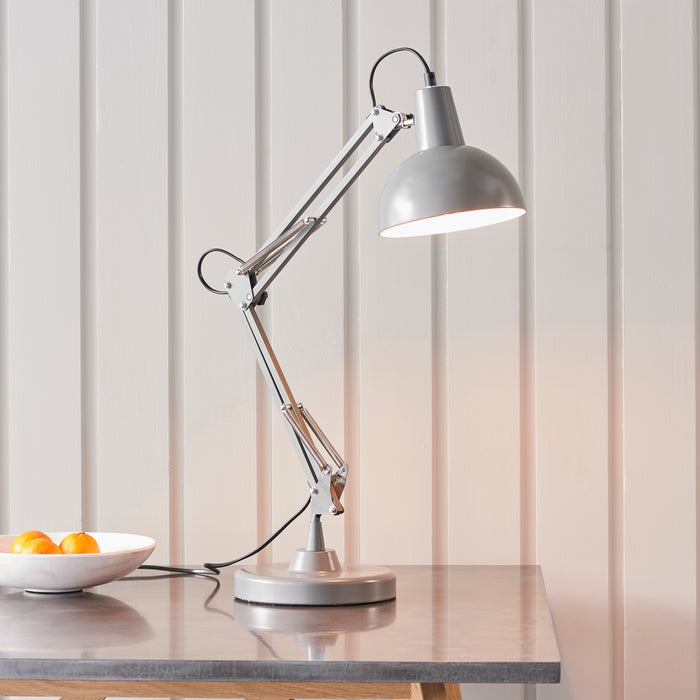 Product DescriptionThe Marshall table light is as adaptable as it is attractive. Designer-style task lighting with slate grey and satin white detailing and an in-line switch.