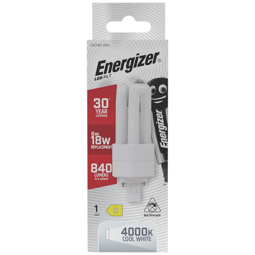 Energizer S30438 LED Lamp PLT GX24d 2 Pin 6W 840lm 4000K (Cool White) Energizer products are recognised as one of the most trusted and highly desir...