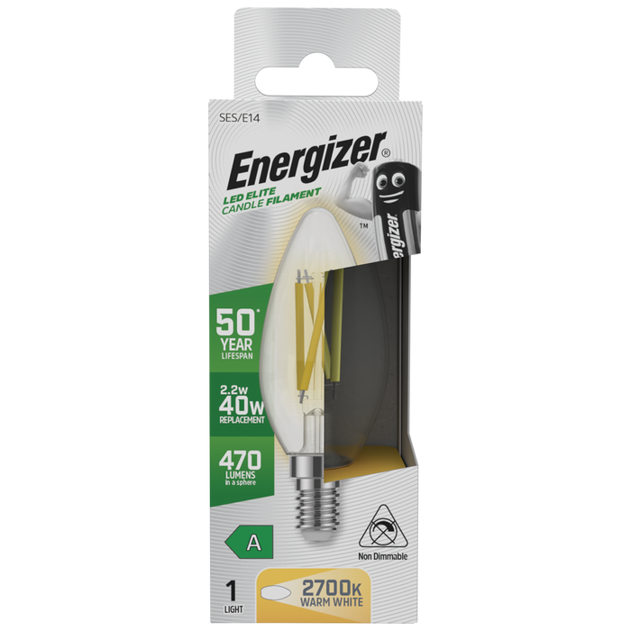 Energizer S29640 A Rated LED Elite Candle E14 Filament 470lm 2.2W 2700K (Warm White)(12 Pack)