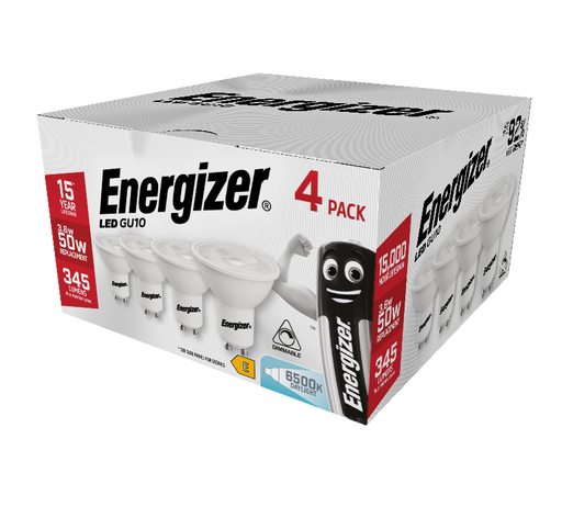 Energizer S10329 3.6W 345lm GU10 Spotlight LED Bulb Daylight 6500K Dimmable (4 Pack) Energizer’s range of LED lamps and fittings for the domestic a...