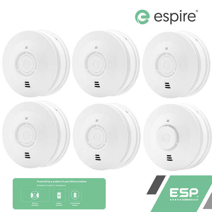 ESP Espire Battery Powered ES1SL 5x Optical Smoke Alarm & ES1HL Heat Alarm by a 10 Year Lithium Battery