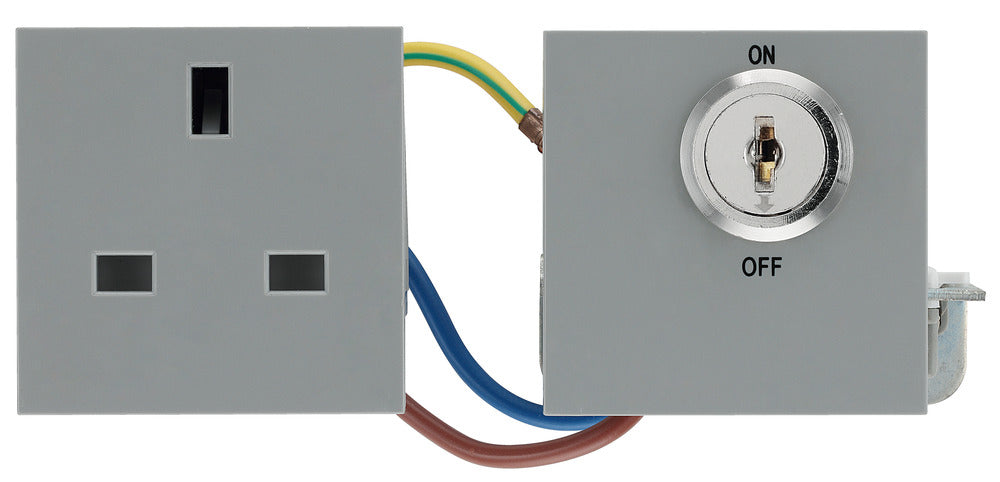 BG EMKYSWSG Euro Module 13A DP Key Controlled Switched Socket - Grey