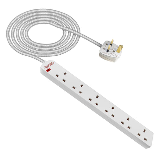 Masterplug 6 Socket 2m 13A Switched Extension Lead + Indicator White A white moulded four or six socket switched extension lead with a rounded sl...
