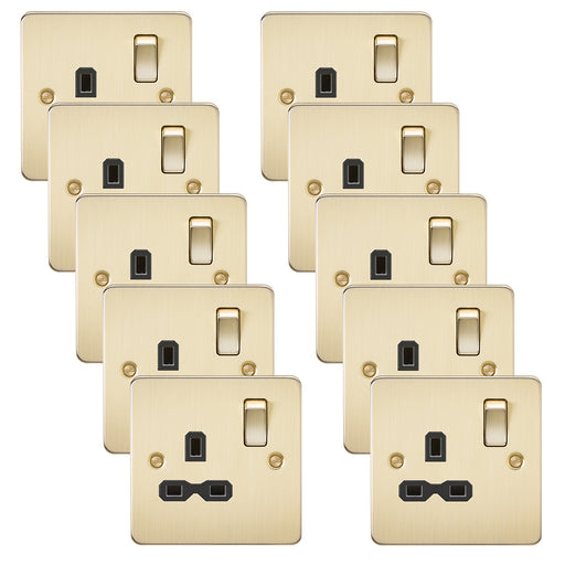Knightsbridge FPR7000BBx10 Flat Plate 13A 1G DP Switch Socket - Brushed Brass + Black Insert (10 Pack)