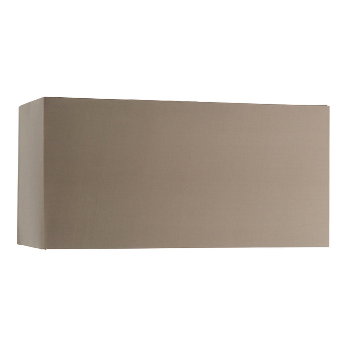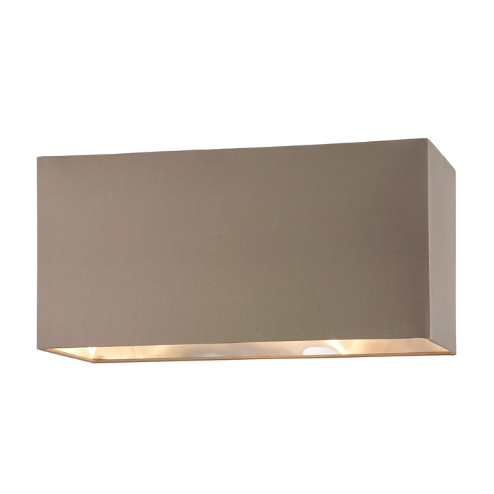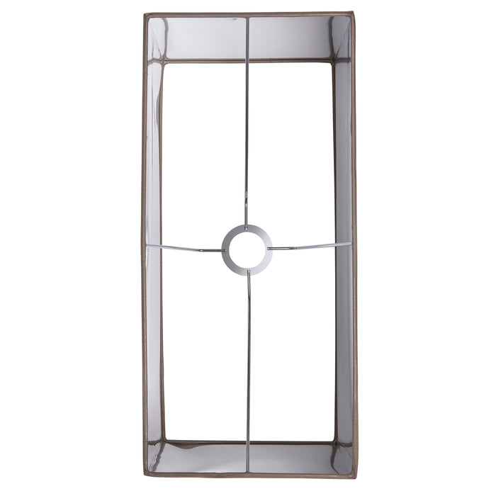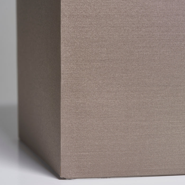 Product DescriptionThe Cassier shade is a straight sided rectangular shape finished in a taupe pure silk and lined with a chrome effect foil. Also available in a larger size.