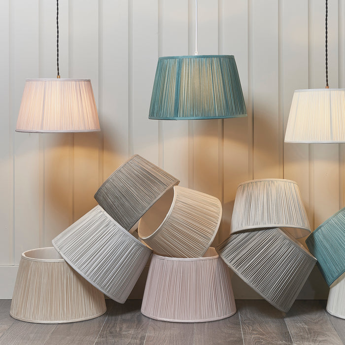 Product Description12 inch silver silk shade. The Freya is a gorgeous collection of gathered pleat silk shades in a range of stylish classic colours.