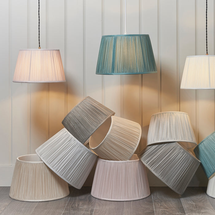 Product Description12 inch dusky pink silk shade. The Freya is a gorgeous collection of gathered pleat silk shades in a range of stylish classic colours.