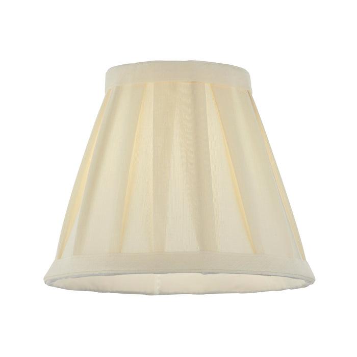Product DescriptionThe 6 inch Carla is a tapered drum shaped shade with cream box pleat fabric. Comes complete with a clip fitting for use with table lamps, chandeliers and wall fixtures. Available in a choice of sizes